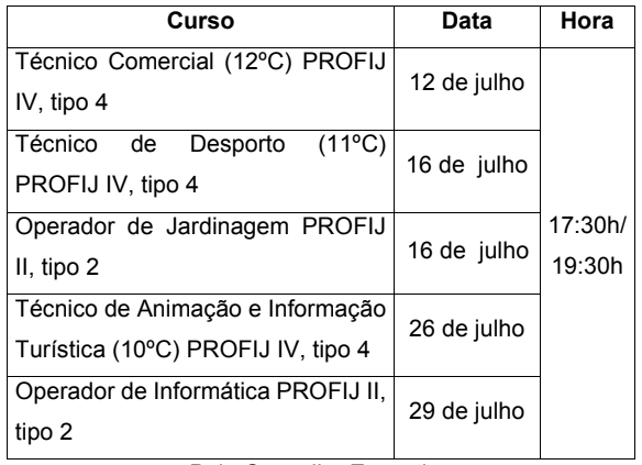 O Conselho Executivo da EBS de Velas informa todos os Encarregados de Educação dos alunos dos cursos PROFIJ II e IV que a entrega presencial da avaliação do 3º período irá decorrer nas seguintes datas e horário, no edifício sede, na sala 1.09: