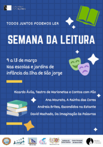 A Semana da Leitura, que decorrerá de 9 a 13 de março, com o tema “Todos juntos podemos ler”, destina-se a criar um ambiente particularmente festivo à volta dos Livros, incentivando a comunidade escolar a ler mais. Este evento envolverá cerca de duzentos e cinquenta alunos da EBS de Velas, que terão oportunidade de participar em sessões diversificadas que conta com colaboração de quatro animadores de várias vertentes relacionadas com a promoção da leitura.