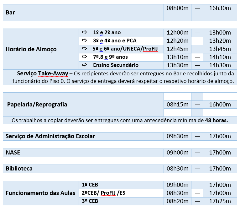 Horários de Funcionamento da Escola