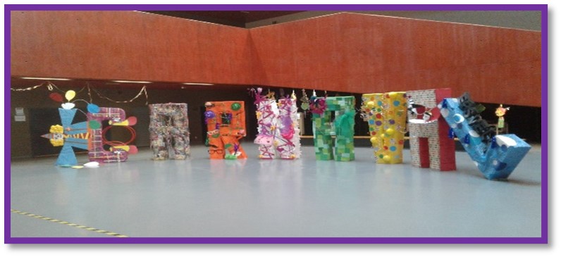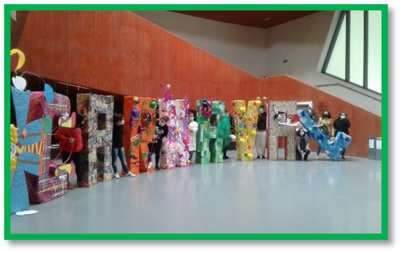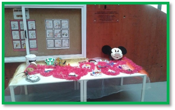 A decoração da entrada do edifício sede não deixa ninguém indiferente, quer pela cor quer pela dimensão dos elementos decorativos. A turma de Artes Visuais do 10ºC foi a responsável pela construção e exposição das letras decorativas, alusivas à época carnavalesca.