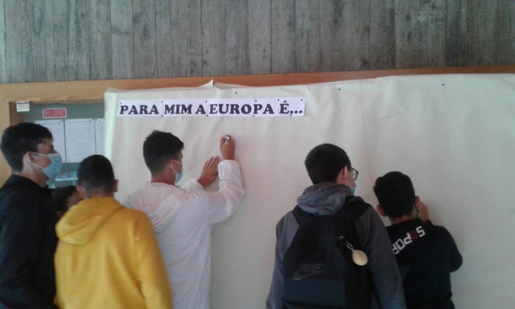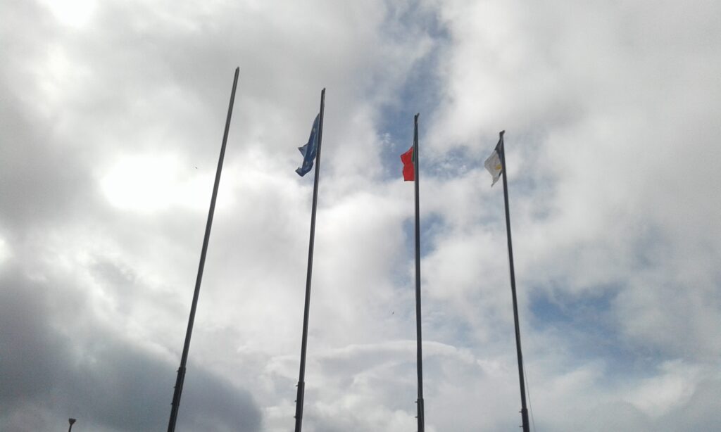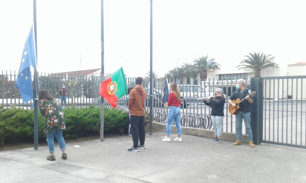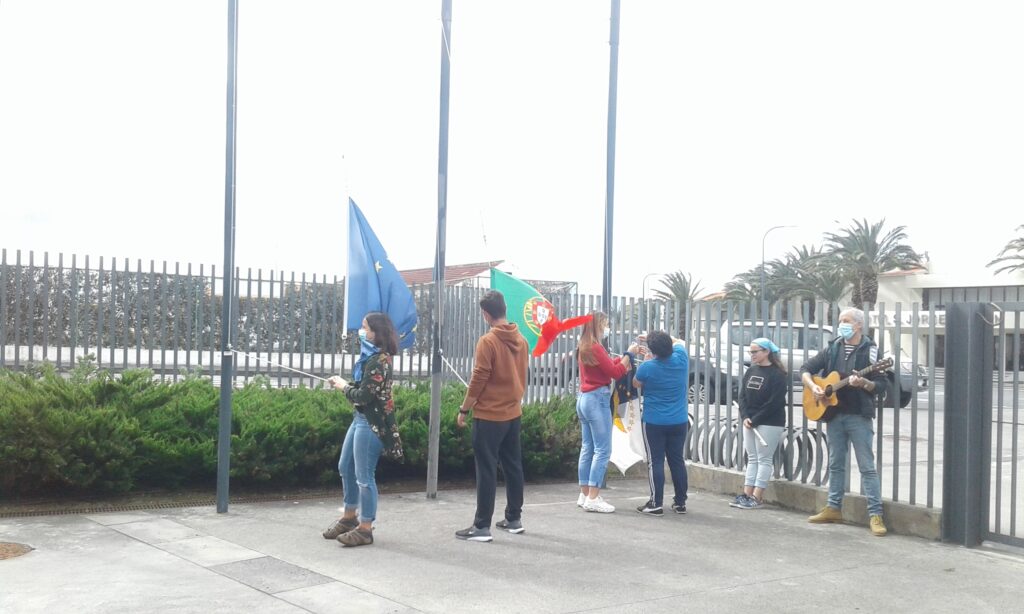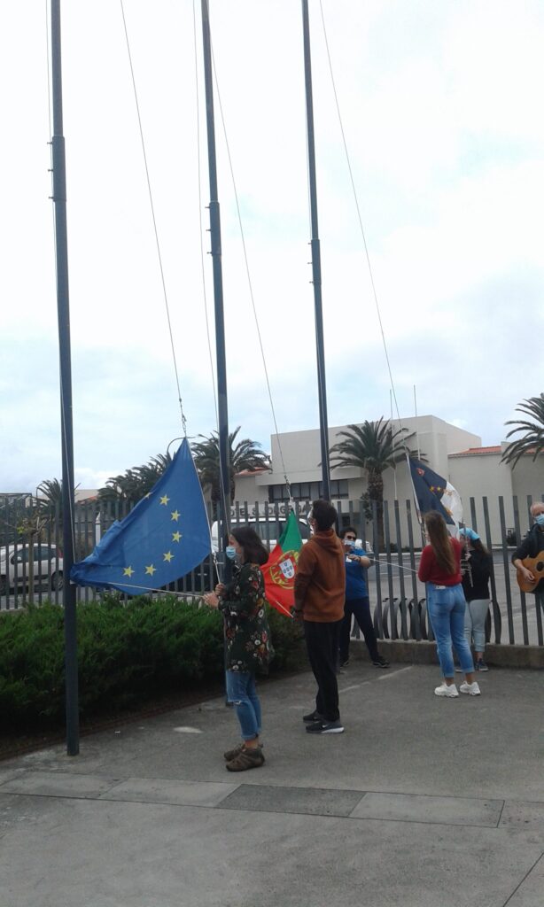No encerramento destas comemorações, alunos, docentes e pessoal não docente tiveram oportunidade de assistir ao ritual de hastear das bandeiras, no espaço escolar, ao som das sonoridades do Hino da Alegria, composição que celebra os valores partilhados pelos Estados-membros, e cuja execução esteve a cargo do docente de Educação Musical e da aluna Filipa Bettencourt.