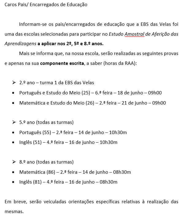 Estudo Amostral de Aferição das Aprendizagens