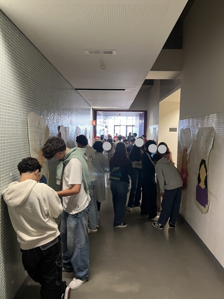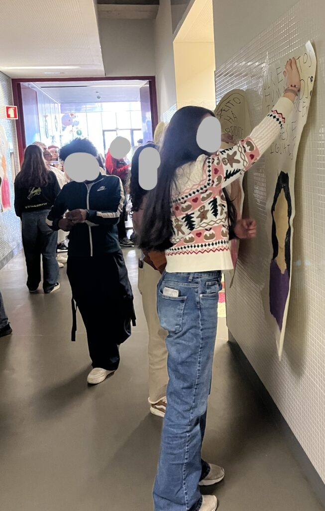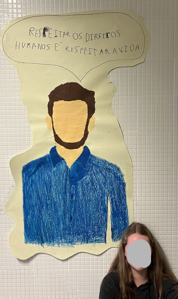 A Instalação Artística foi montada no corredor principal da EBS de Velas, com a intenção propositada de provocar uma interação com os utilizadores do espaço, tornando-se inevitável a chamada de atenção para o tema explorado, “DIREITOS HUMANOS”.