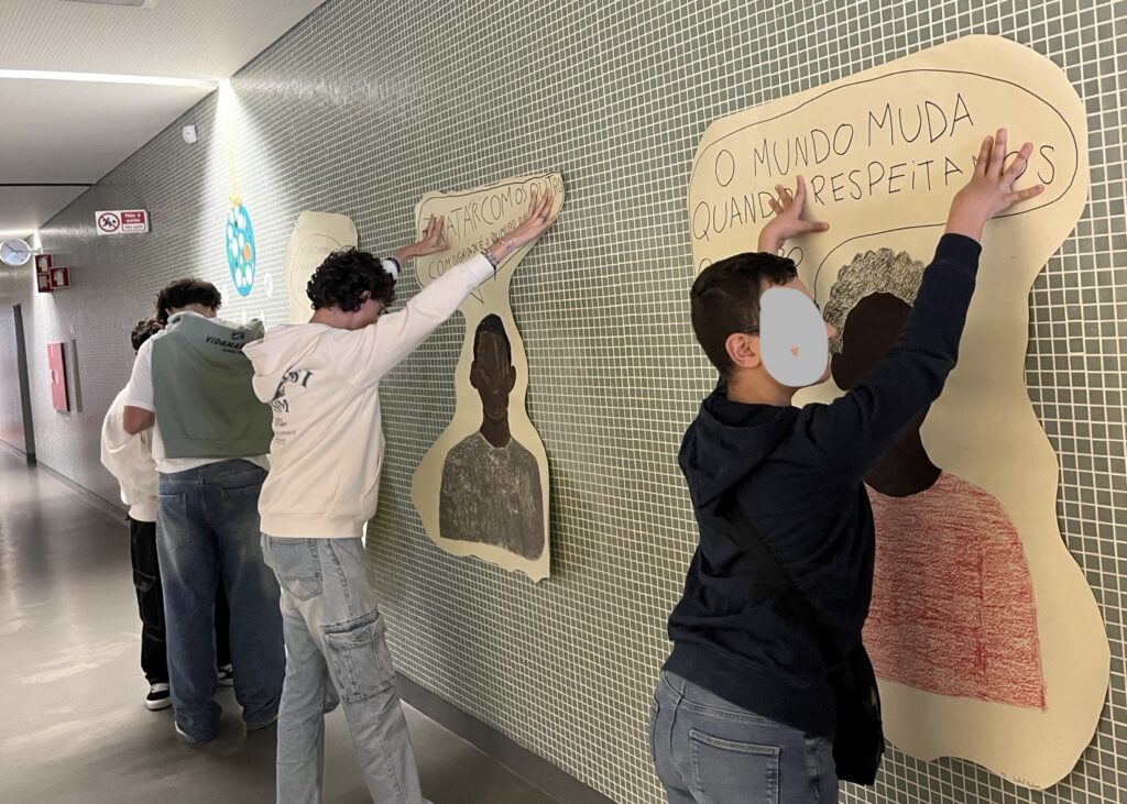 O trabalho foi elaborado em articulação interdisciplinar e interciclos, pelos alunos de Artes Visuais do 12º ano, na disciplina de Desenho A, juntamente com os alunos do 9º ano, turma A, nas Áreas Curriculares de Cidadania e Educação Visual em colaboração com o Clube Europeu.