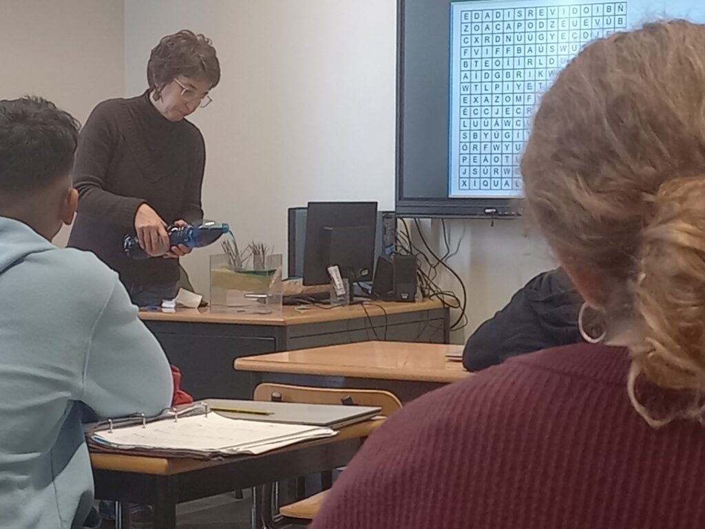 A técnica da SRAAC, Marta Bettencourt, deslocou-se à escola para dinamizar a atividade “Mini-turfeira – um ecossistema numa garrafa”, proporcionando aos alunos uma abordagem prática e educativa sobre o funcionamento e a importância das zonas húmidas.